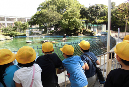 10月14日 2年生は動物園へ。クラスごとに南園の動物を見てまわった後、お弁当タイム。食後は、サバンナゾーンを班ごとにオリエンテーリングをしながら回りました。北園の残りの動物は、また、クラスごとに見ました。