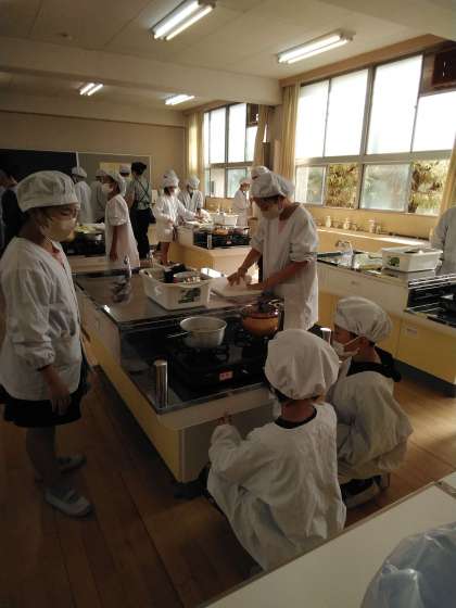 5年生が、お味噌汁とご飯の、調理実習に取り組みました。