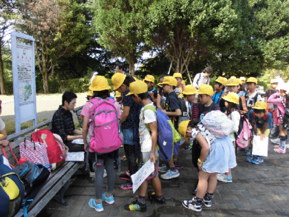10月21日 鶴見緑地公園に行きました。地図係や時計係などの役割を決めて班で協力してオリエンテーリングをしました。地図や時計をみながら「こっちは違う」「後何分しかない」などと言いながら周っていました。ゴールをした後は、達成感にあふれ、途中で見た様々な国際庭園の感想を一生懸命に伝え合っていました。昼食後は、広い芝生広場で、鬼ごっこをしたり、だるまさんが転んだをしたりしました。帰りは疲れているようでしたが、子どもたちにとって有意義な一日になりました。