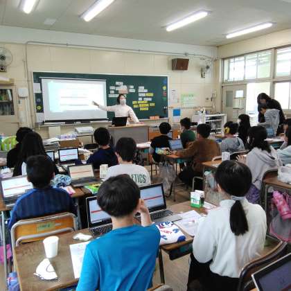 ぴかぴかの丈夫な歯を保つことができるように、静かに集中して、4年生が学習しています。