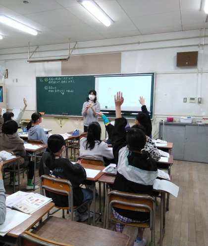 展開図について、イメージをしやすいように、ICT機器を活用したり、工作用紙や厚紙などを使ったりして、理解を進めています。
