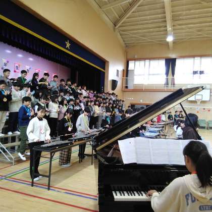 6年生が、1年生から5年生へ、感謝を込めて合奏をしました。