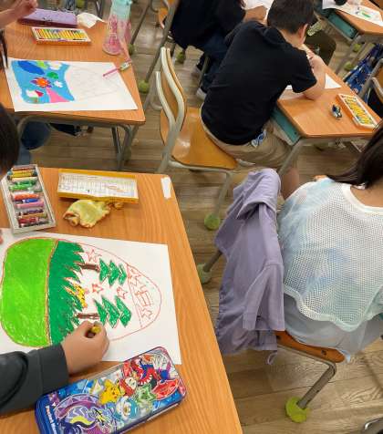 2年生の図画工作科の時間です。「こんなたまごがあったらいいな」とそれぞれが自分の好きなものやお気に入りのものをたまごの中に描いていました。どんどん迷うことなく描いている子、一生懸命悩みながら描きすすめる子、それぞれの個性があらわれていて、見ているこちらまで楽しい気分になりました。