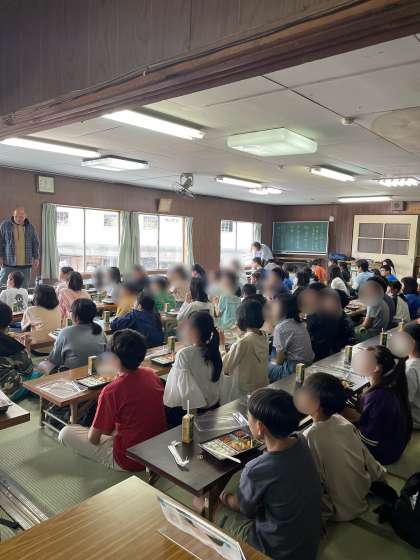 宗陶苑でお弁当をいただきました。朝早かったからかみんなお腹ペコペコで、あっという間に食べていました。