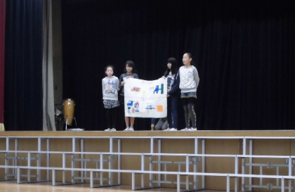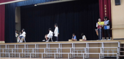 11月18日第5校時 5年生が学習発表会をしました。各クラスごとに社会科の学習の発表をした後、5年生全員で「剣の舞」を合奏、「大切なもの」を合唱しました。「剣の舞」はとても力強く演奏できました。「大切なもの」はやさしく美しい声で歌っていました。