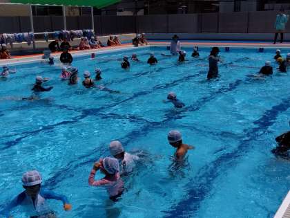 今日は、幼稚園の後で、水位が低かったので、プールの床に落ちている宝物を手で拾いました。顔を水につけないと、宝物が拾えません。みんな拾うことができたかな。