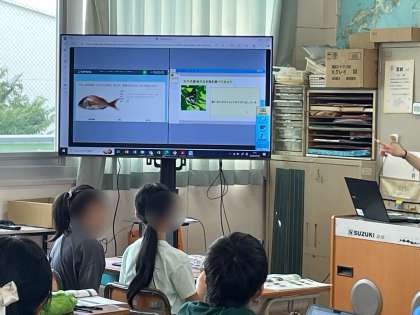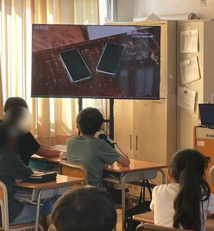 授業の中で、子どもたちが自分の興味のあることについて自分で調べ、まとめ、それをみんなの前に提示し発表する。そんな学習がICT機器を活用して実践されています。
