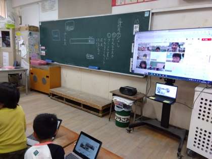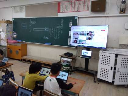 1年生は、初めてチームスを行いました。自分の映像が、先生の大型モニターに映って、大興奮でした。