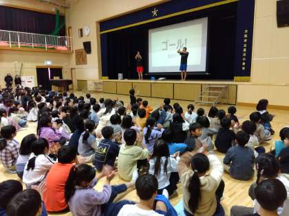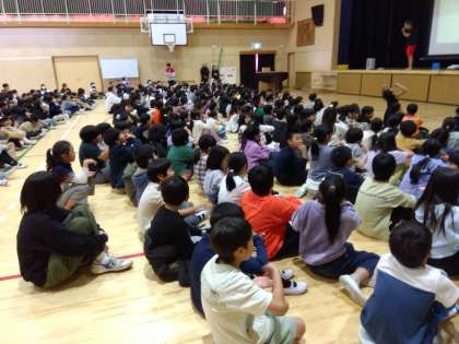 PTA成人教育主催の「手話パフォーマンス」実技講習会に、1年生から5年生の児童も参加しました。たくさんのパフォーマンスを教えていただき、児童から大歓声が上がっていました。
