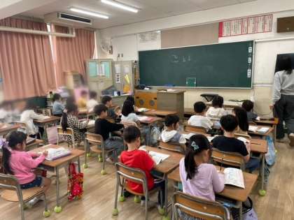国語科でひらがな「こ」「い」を書く練習をしています。一画一画、丁寧に書くことができていました。