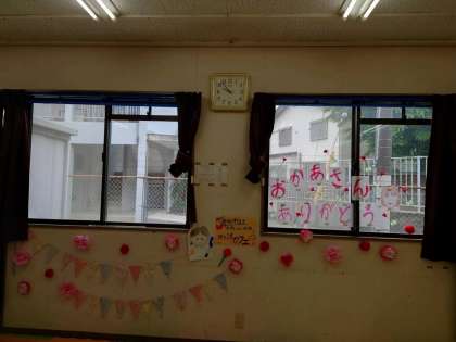 また母の日が近いということで、今日は母の日の飾り付けをしました!