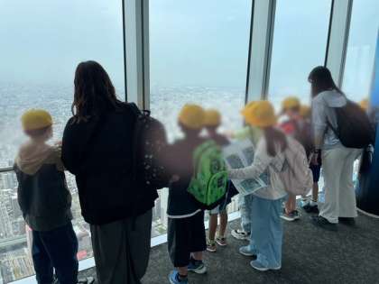 あべのハルカスの展望台にのぼって、東西南北様々な方向から大阪の街を見学しました。