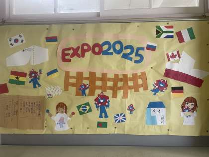 掲示委員会制作の掲示板にも2年生の万博日記にも、ミャクミャクがいっぱいです。とても上手に描けています。