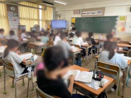 算数科「図形の合同と角」の学習をしています。四角形に対角線を引き、合同な三角形ができるかを調べました。また、対角線で分けると合同な三角形ができる四角形はどれかを見つけました。