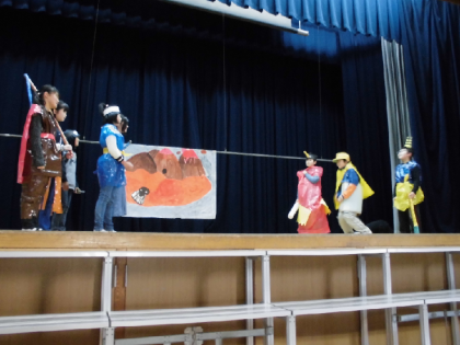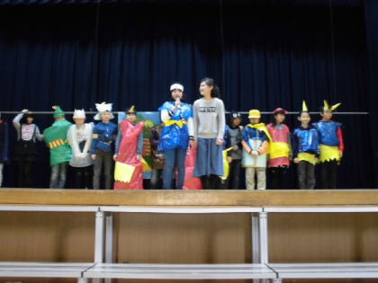 2月19日は演劇クラブです。台本も小道具も背景もすべて自分たちで作りました。