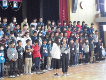 3月4日 6年生を送る会をしました。たてわり活動でお世話になった自分たちの班の6年生には、感謝の気持ちをこめて寄せ書きをして渡しました。また、各学年、歌やリコーダー奏などのプレゼントをしました。1年生は、2組と3組が学級休業中だったのですが、1組が1クラスでがんばりました。6年生からは、合唱、合奏、ぞうきんのプレゼントが送られました。