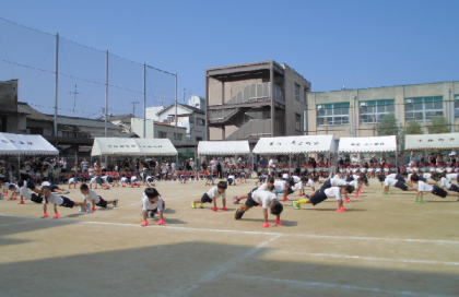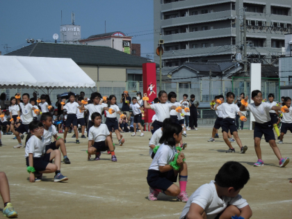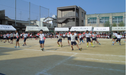 団体演技「心の空」は、和太鼓をイメージしたかっこいいダンスです。途中、組体操の一人技も入っていました。みんなかっこよくのびのびと踊りました。