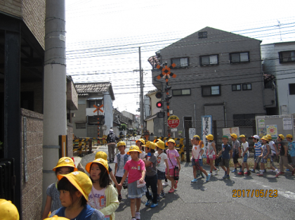5月23日 今日は町たんけん初日です。日頃遊んでいる地域の公園や、お地蔵さん・神社などをめぐりました。みんなで、おすすめなわけを交流したり、カキツバタ、おもかる石なども見学したりしました。明日は、墨江地域の学校やお店などをまわるつもりです。墨江の町のいいところに、たくさん気づいてほしいと思います。