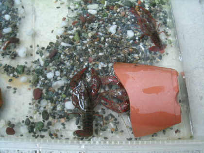 6月12日 墨江丘中学校からザリガニを12匹いただきました。中学3年の人たちが届けてくれました。今、本校では2年生が生活科でザリガニの飼育・観察をしています。各班で育てているザリガニに加えて元気なザリガニが仲間に入りました。明日の朝、子どもたちは大喜びをすることでしょう。