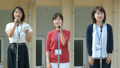 6月26日 学生ボアランティアとして大阪市立大学から3名の方が来られることになりました。全校児童朝会で子どもたちに紹介しました。