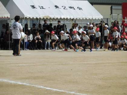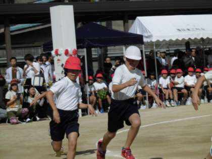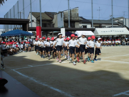 3年生の個人走は、プログラム2番。全校演技の「はじめの体操」の次です。3年生は緊張した面持ちで入場してきました。