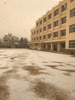 今週は冷え込みがきつく、本日はついに雪が舞い、本校もうっすら雪化粧となりました。すでにお知らせの通り、3学級が学級休業となりました。週末は温かくして過ごし、月曜日に元気に登校できるよう体調管理をお願いします。