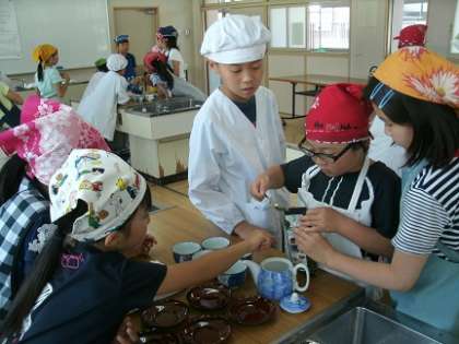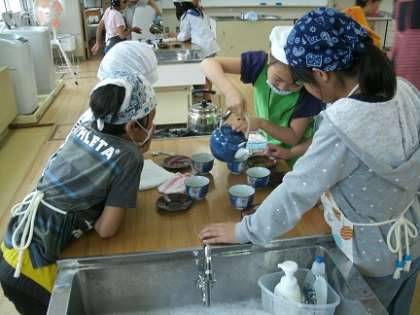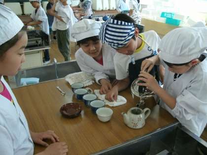 5月1日・2日 初めての調理実習をしました。今回は、お湯を沸かして緑茶をいれました。友だちと一緒に調理することに興奮しながらも、火傷をしないように気をつけながら活動しました。出来上がったお茶は思った以上に苦く、「苦い〜!」と感想を言ってました。