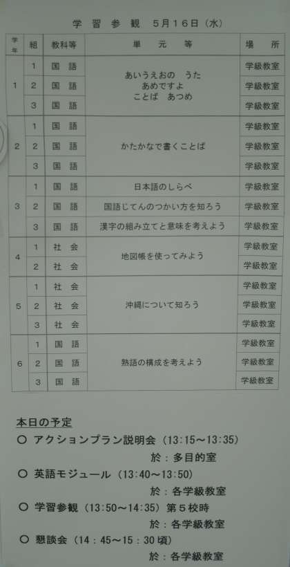 本日16日(木)アクションプラン説明会と学習参観・懇談会を実施します。アクションプラン説明会では、今年度の教育目標等について学校長から説明をいたします。学習参観は各学級での子どもたちの学習の様子をご覧ください。内容については案内掲示をご覧ください。懇談会では、各学年の取り組み等を担任が説明いたします。子どもたちの情報交換もできれば幸いです。ぜひご参加ください。よろしくお願いします。