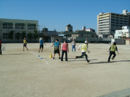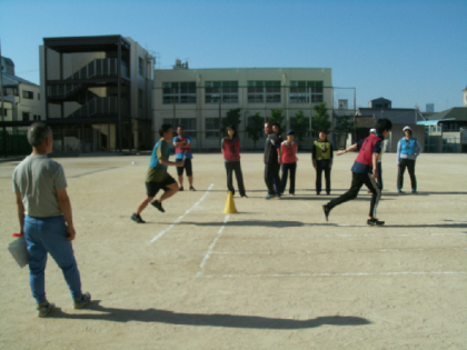 5月21日 2回目のメンター研修は、大西教諭を講師に迎えての「リレー バトンパス指導のポイント」についてです。アンダーハンドパス、オーバーハンドパスの基本や改良バージョンを学び、スピードにのった上で確実にバトンを渡すにはどうすれば良いのか、次の走者のスタートのタイミングなど、実際に体を動かしながら体得しました。