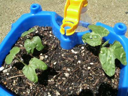 今年もいろいろな種類の植物の種を蒔いたり、苗を植えたりしました。日々子どもたちは水やりのお世話をしています。暖かい日が多いので、今年は少し生長が早いかなと感じています。