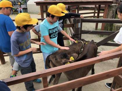 グループ活動の様子です。普段の生活では、あまりふれあうことのできない動物と楽しい時間を過ごしています。この体験活動をきっかけに、様々な動物に関心をもったり、命を大切にしたりしてほしいです。