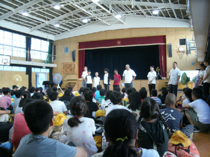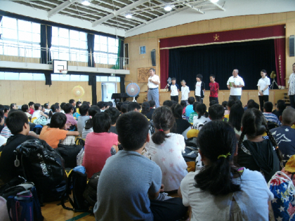 いよいよ林間学習の日がやってきました。5年生は元気よく登校し、出発式に臨みました。三日間の目標などを確認し笑顔いっぱいで出発しました。