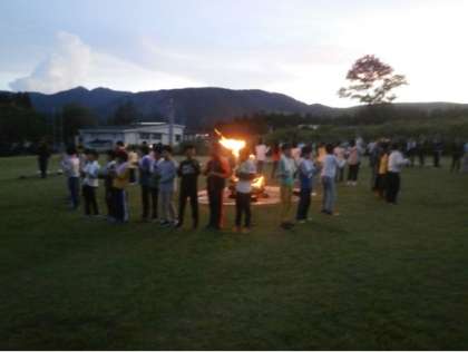 夕方、ザザッと雨が降りましたが、すぐにやみ予定通りキャンプファイヤーをしました。大きな炎をみんなで囲みました。火の神が降臨し「人間と火の関係」について教えていただいたり、火に感謝しながらダンスやゲームをしたりして、充実した時間を過ごしました。