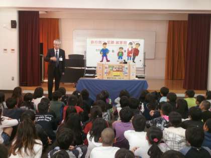 11月6日 難波少年サポートセンターの方が、非行や犯罪被害の未然防止を図るための出前授業をしてくださいました。非行の入り口と言われる「万引き」について、ペープサートの劇を通して考えることができました。非行防止のための大切な3つのポイント「1.ルールを守る。」「2.断る勇気をもつ。」「3.思いやりの気持ちをもつ。」を学びました。保護者向けの手紙も配付しましたので、ぜひご覧いただき、ご意見ご感想などありましたらお子さんを通じて各担任までご提出ください。