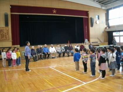 7日 生活科の学習で地域の方々に6つの昔遊びを教わりました。やさしく丁寧に教えていただき、子どもたちは最後まで楽しく活動することができました。本当にありがとうございました。最後には子どもたちからお礼の歌『世界中の子どもたちが』をプレゼントしました。