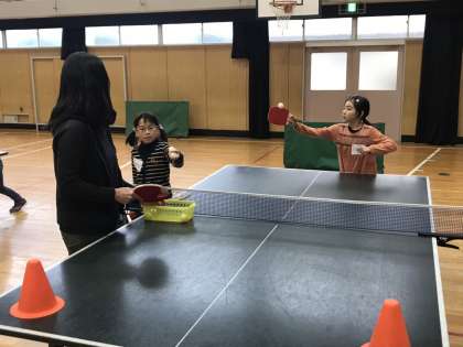 9日 PTA卓球部のみなさんに卓球の基礎を教えていただきました。低学年の部・高学年の部に分かれ行いました。子どもたちはラケットの使い方やサーブの打ち方を学び、練習していくうちに、どんどん上達していき達成感を味わっていました。