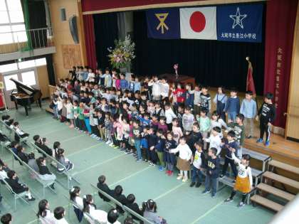 5日 暖かな春の日差しが降り注ぐなか、入学式を行いました。ピカピカの1年生が墨江小学校の仲間入りをしました。きちんと座ってお話を聞く姿が立派でした。2年生はお祝いの言葉を大きな声で堂々と言うことができました。手話をしながらの歌もバッチリでした。頼もしい姿の2年生でした。
