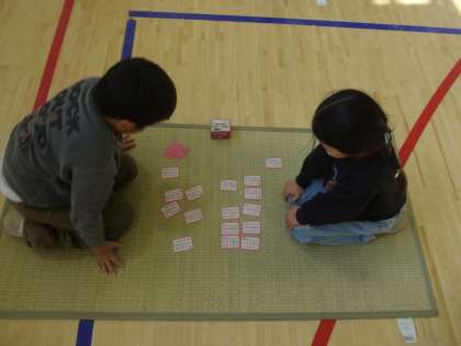 百人一首をしています。上の句を覚えることができて嬉しそうな子や、まだまだ難しくて「これから頑張るぞ」と意気込んでいる子、いろいろな様子がみられました。引き続き、取り組んでいきたいと思います。
