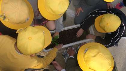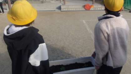 たてわり班でパンジーなど三種類の花を植えました。学年ごとに役割があり、協力しながら植えることができました。今日から水やりも始まります。どんな花が咲くか楽しみです。