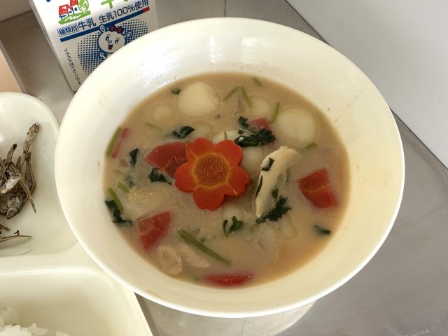 今日のぞう煮には花形のラッキーにんじんが入っており、児童のみなさんも喜んでくれました。