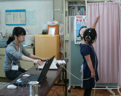 5月8日、これは1年生の聴力検査の様子です。一人ずつ調べてもらっています。待っ...