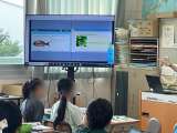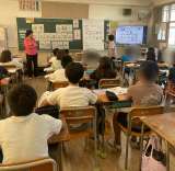 5年生の英語の授業風景です。担任の先生とC-NETのニルファ先生と一緒に、歌やリ...