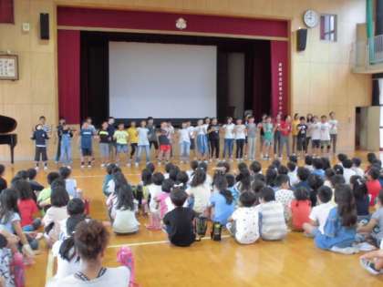 7月19日(金)に1学期の終業式を行いました。初めに3年生と6年生が1学期に学習したことを発表しました。3年生で初めて経験した『毛筆の習字』『リコーダー』『理科』『社会』で頑張ったことを発表しました。きれいな音色で「メリーさんのひつじ」のリコーダーの演奏もできました。最後は元気に「ぼくたち大阪の子どもやねェ」を歌いました。6年生は国語の教科書にある『生きる』の詩を元に、力強く生きたいというそれぞれの気持ちをテレビCMのフレーズや音楽表現を取り入れながら自分のことばで表現することができました。