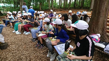 11:47、日が射してきました。涼しい木陰でお昼のおいしいお弁当をいただいています。