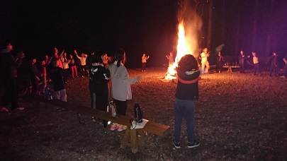雨が上がり、予定通りキャンプファイヤーを実施しました。途中でまたパラパラと降り出したり、いつの間にか雲がすっかりなくなって綺麗な星空が見えたりしました。