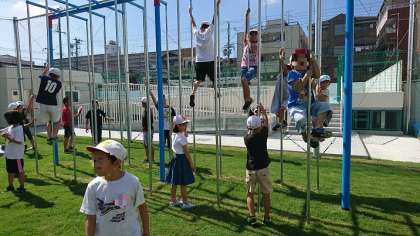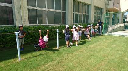 昨年度より新築していたプールがようやく完成しました。今日はみんなで完成したぴかぴかのプールを見学しました。運動場全面を使って遊べるのも久しぶりです。鬼ごっこをしたり、遊具で楽しそうに遊んだり、友達と手をつないで芝生の上を歩いたり、みんな思い思いに喜びを表していました。