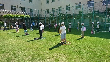 コロナウイルス感染症で緊急事態宣言が延長されている中ですが、5月14日、15日に登校日を設けて、2年生から6年生が学年ごとの分散登校をしました。青々と育った芝生の上で集合し、子どもたちは久しぶりに友だちに会えて、笑顔があふれていました。友だちと1メートルの間を空けることや、ていねいに手洗いをすることなど、しっかり意識することができました。感染症を防ぐ新しい生活に慣れて、本格的な授業再開となった時には、みんな元気に毎日登校できることを願っています。17日(日)には、1年生の入学にかかるオリエンテーションを行います。
