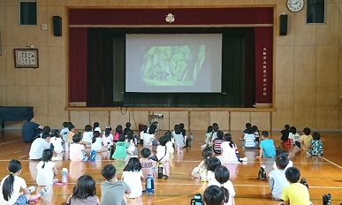 8月6日は75年前に広島に原子爆弾が投下された日です。今年は子どもたちが登校する日なので、みんなで平和について考える日としました。全校朝会でお話を聞いたり、各部屋に分かれてビデオを見たりして、戦争のために多くの尊い命が失われたことや、今もなお原子爆弾による苦しみが続いている人々がおられることなどを学びました。最初は現実に起きたことだとは思えないようでしたが、平和の大切さを考えることができたと思います。