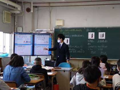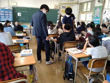 9月23日から本校の卒業生が教育実習をしています。6年生の教室を中心にいろいろな学年の教室を回って教員になるための勉強をし、授業研究に取り組んでいます。休み時間には子どもたちと一緒に運動場を走り回って子どもたちと触れ合っています。
