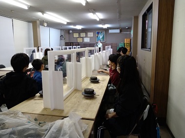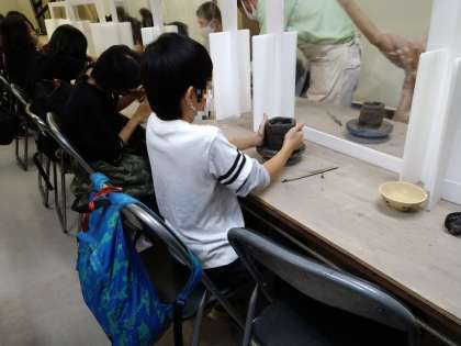 説明をしっかり聞いて、ろくろの上で土をこねました。なかなか思い通りにはいきませんが、世界に1つだけの茶碗や湯呑み。出来上がりが楽しみです。